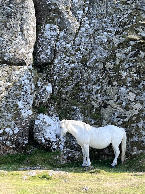 But on the way back, just at a corner of the giant Haytor rock, a fairy-tale-ish white horse stands still, as if waiting for his prince (or princess?) to begin a story-telling. I walked by closely enough, with merely 20 metres away, I saw his eyes are closed (or half-opened?), not a single movement, but only his soft mane flying in this quiet moorland. I wonder if he is dodging the heat wave.